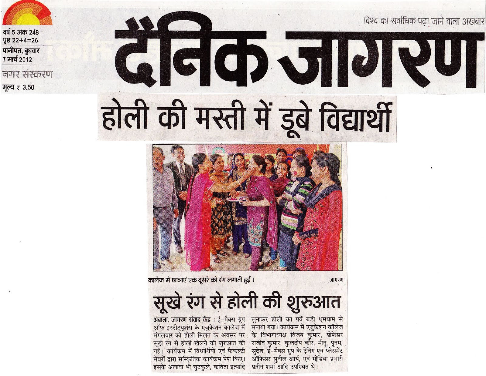 Tilak Holi Celebrated at E-Max College of Education